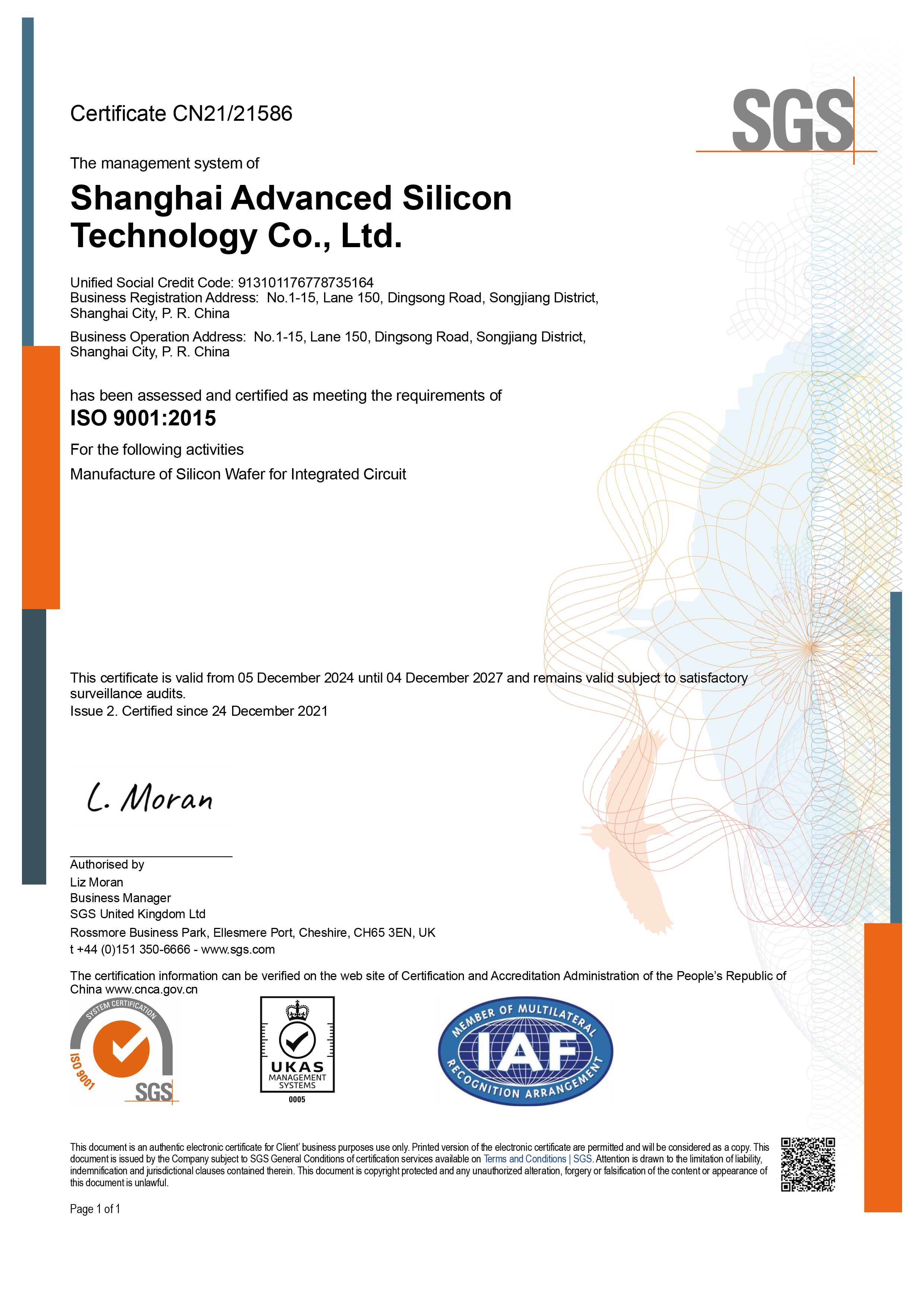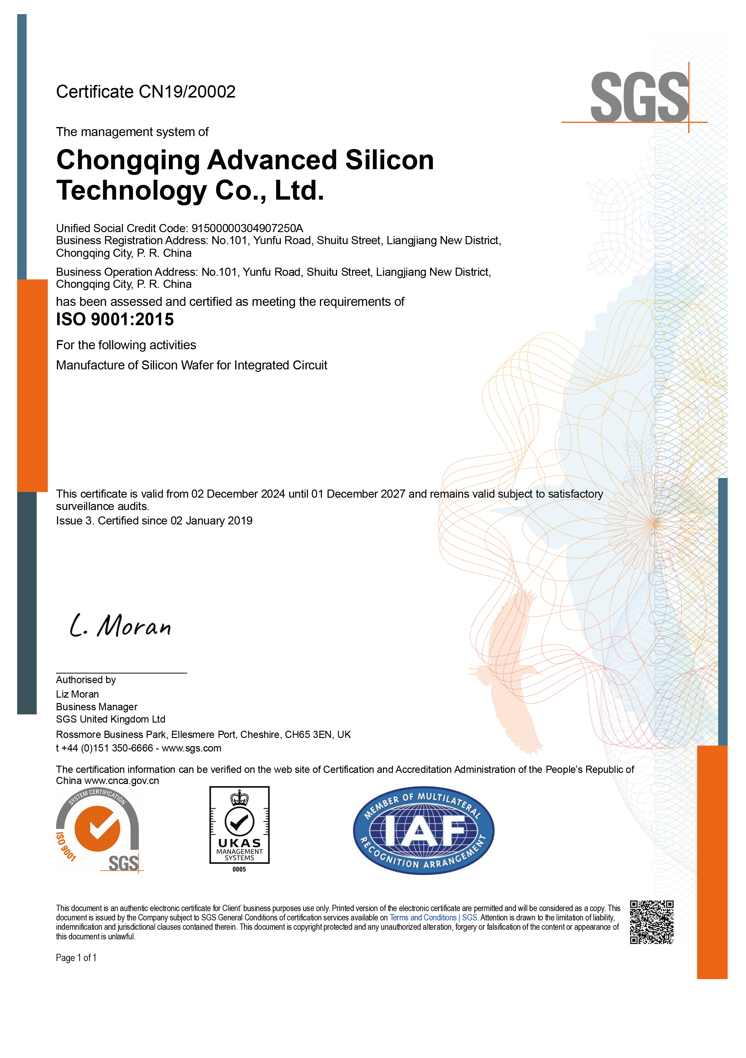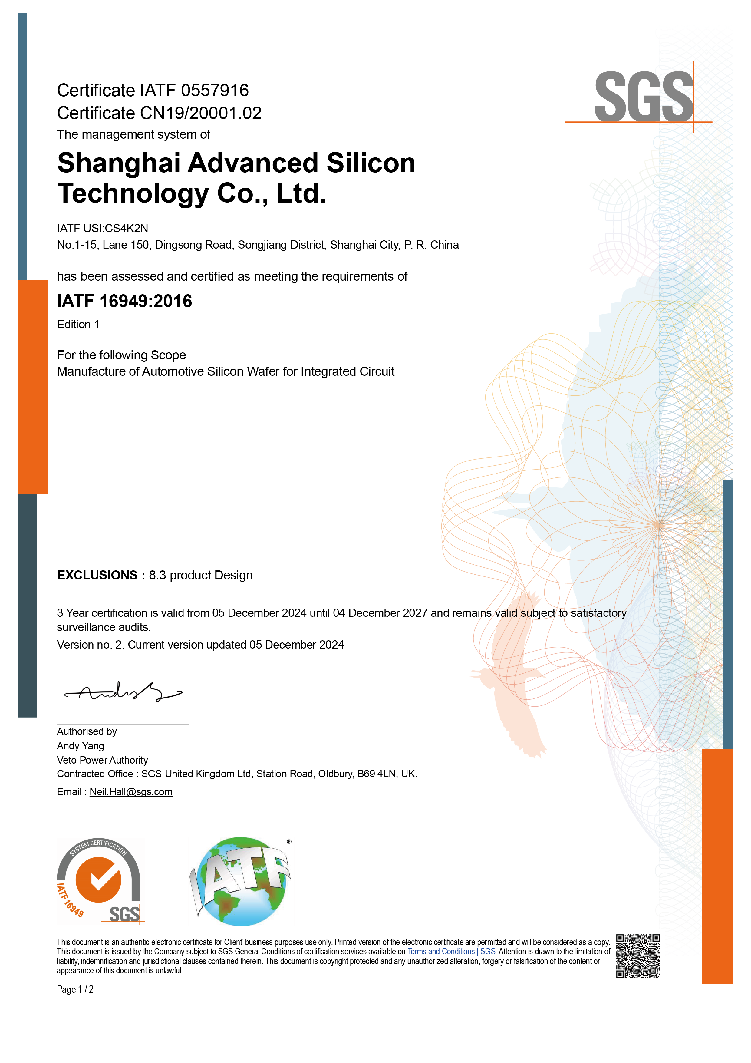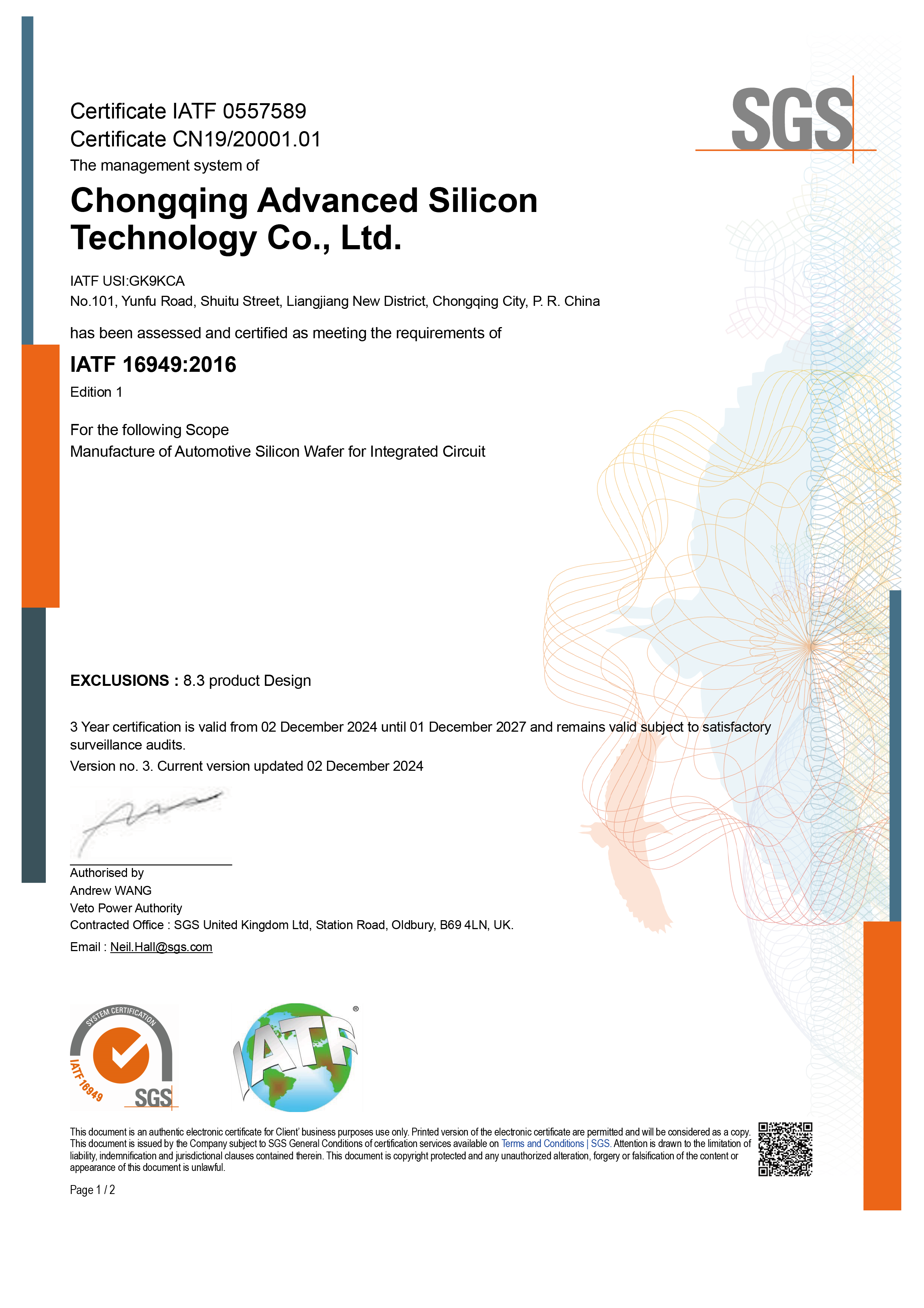 超硅在上海厂和重庆厂建立了统一的质量管理系统,符合IATF 16949标准要求,满足客户对超硅的要求。
